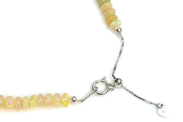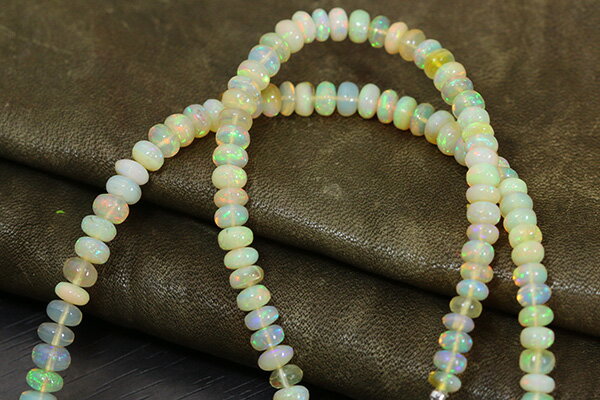 まん丸ではなく、円盤のようなシェイプのエチオピアオパールがずらりと全周連なった贅沢なネックレスです。